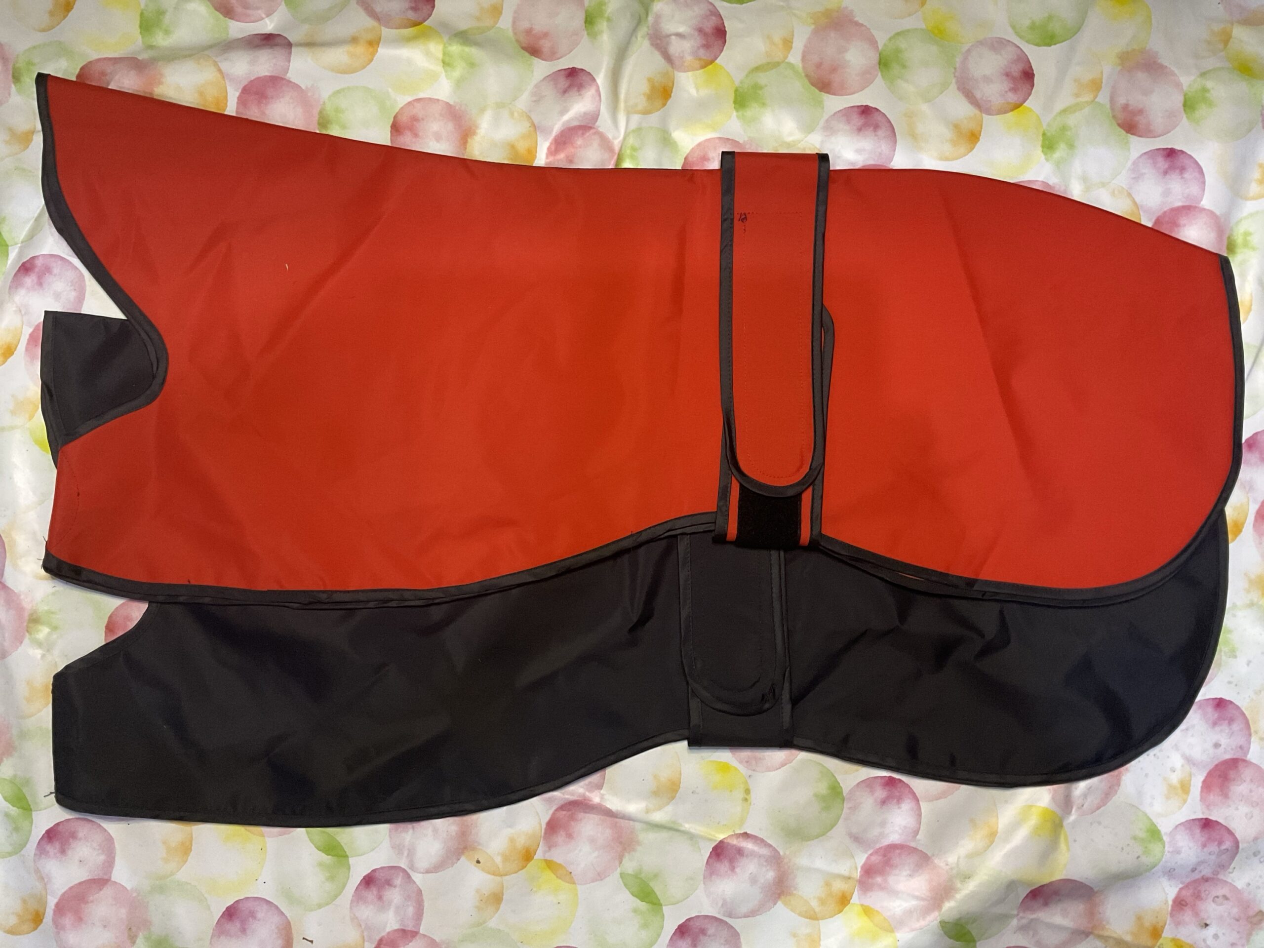 A lightweight raincoat suitable for greyhounds, lurches, whippets or similar with options of Red or black from 19-30 inches in size. Limited availability